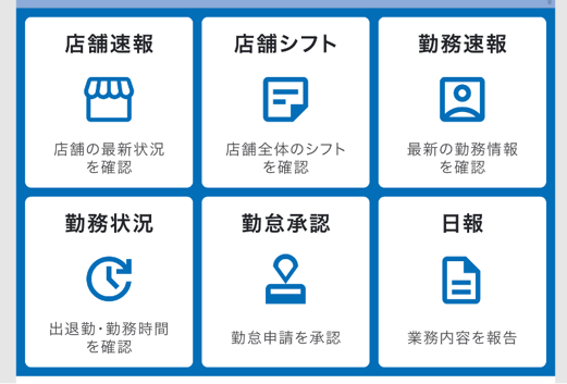 LINE上のリッチメニューから、シフト確認、勤務状況の確認、給与見込みなど、よく使う機能に直接アクセスできます。毎日の業務がよりスムーズになります。